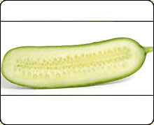 The fruit is roughly cylindrical, elongated, with tapered ends, and may be as large as 60 cm long and 10 cm in diameter. Cucumbers grown to be eaten fresh (called slicers) and those intended for pickling (called picklers) are similar. Cucumbers are mainly eaten in the unripe green form. The ripe yellow form normally becomes too bitter and sour.