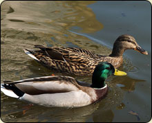 In many species, the call of the drake (male) is different from that of the hen (female). Mallard drakes make a lower pitch, longer quack than the hen mallard, and is actually more of a buzzing sound than that of a quack. This call is often used while feeding and when a mallard drake is landing. It gives the other birds a heads up. The quack of a mallard drake requires voice and is replicated by humming into a special whistle-like call. This whistle is often called a 6-in-1 whistle, due to the fact that it can replicate six different duck species sounds.