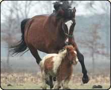 The distinction between a horse and pony is not simply a difference in height, but takes account of other aspects of phenotype or appearance, such as conformation and temperament. Ponies often exhibit thicker manes, tails and overall coat. They also have proportionally shorter legs, wider barrels, heavier bone, shorter and thicker necks, and short heads with broad foreheads. They often have calmer temperaments than horses and also a high level of equine intelligence that may or may not be used to cooperate with human handlers. In fact, small size, by itself, is sometimes not a factor at all. While the Shetland pony stands on average 10 hands high (40 in/100 cm),[26] the Falabella and other miniature horses, which can be no taller than 30 inches (76 cm), the size of a medium-sized dog, are classified by their respective registries as very small horses rather than as ponies.