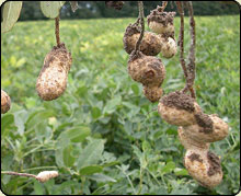 Peanuts are particularly susceptible to contamination during growth and storage. Poor storage of peanuts can lead to an infection by the mold fungus Aspergillus flavus, releasing the toxic substance aflatoxin. The aflatoxin-producing molds exist throughout the peanut growing areas and may produce aflatoxin in peanuts when conditions are favorable to fungal growth.