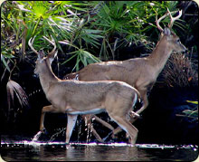 Although most often thought of as forest animals depending on relatively small openings and edges, white-tailed deer can equally adapt themselves to life in more open prairie, savanna woodlands, and sage communities as in the Southwestern United States, Northern Mexico, and Colombia and Venezuela. These savanna-adapted deer have relatively large antlers in proportion to their body size and large tails. Also, there is a noticeable difference in size between male and female deer of the savannas. The Texas white-tailed deer (texanus) of the prairies and oak savannas of Texas and parts of Mexico, are the largest savanna-adapted deer in the Southwest with impressive antlers that may rival deer found in Canada and Northern United States. There are also populations of Arizona (couesi) and Carmen Mountains (carminis) white-tailed deer that inhabit montane mixed oak and pine woodland communities that are surrounded by lowland deserts. The Arizona and Carmen Mountains deer are smaller but may also have impressive antlers, considering their size. The white-tailed deer of the Llanos region of Colombia and Venezuela (apurensis and gymnotis) have antler dimensions that are similar to the Arizona white-tailed deer. Thacker Mountain Lodge offers Mississippi White-tailed Deer Guided Hunts, and Mississippi Delta Whitetail deer hunts, and Mississippi deer hunts.